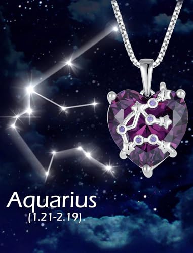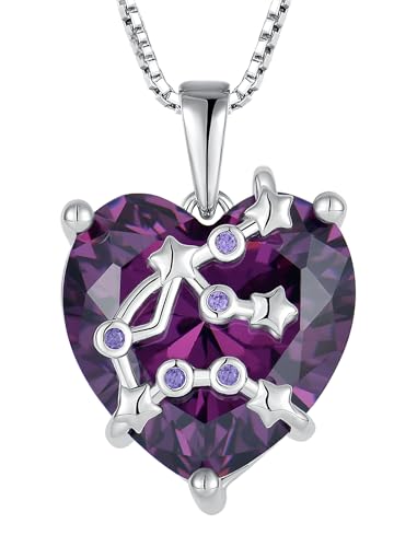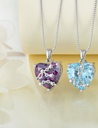 Zodiac Constellation Necklace for Women, 925 Sterling Silver Heart Pendant with Birthstone Astrology Horoscope Jewelry Gifts