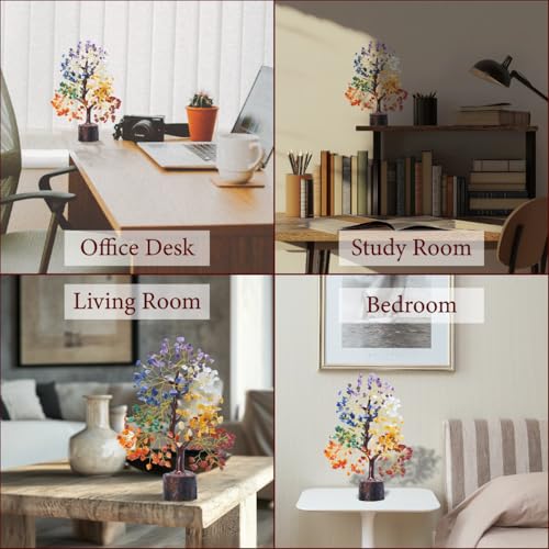 7 Chakra tree of life Crystal Healing Money Tree for Home Living Decor, Office Desk Decor | Handmade Feng Shui Bonsai for Positive Energy, Wealth & Good Luck | Birthday Gifts for Men, Women, Mom