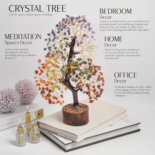OFFICE DECOR/DESK DECOR/SHELF DECOR/HOUSE DECOR AND HOUSE WARMING GIFTS GIFTING DELIGHT – Beyond its healing properties, the gemstone Gem tree is a captivating decor piece. Its intricate design and vibrant colors make it an eye-catching addition to any space—be it a meditation corner, office desk, or living room. It also makes for a thoughtful and meaningful gift, conveying wishes of balance, positivity, and renewed energy to loved ones on Hippie, Thanksgiving and Christmas, New Year.