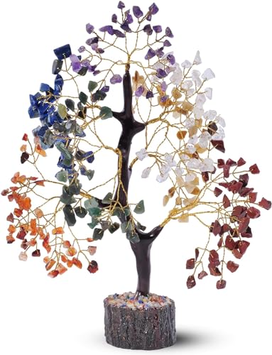 PYOR Chakra Tree, Crystals and Healing Stones, Good Luck Gifts for Women, Crystal Tree, Home Office Decor, Crystals, Chakra Decor, 300 Chakra Gemstones – 10-12″ Money Trees